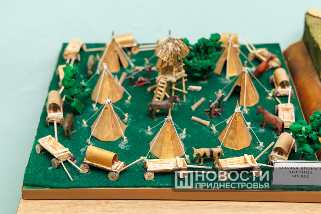 Интересными экспонатами стали макет коша – главной резиденции казаков, которая располагалась в Слободзее, курени – казачьего жилища, а также срубной церкви на улице Правды в Тирасполе.