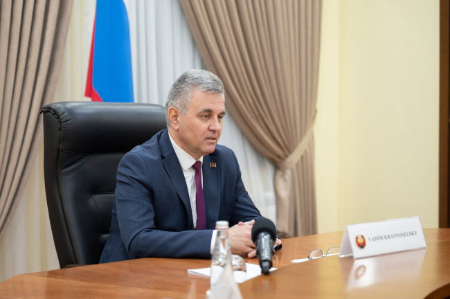 Вадим Красносельский, приветствуя гостей, отметил, что он как руководитель страны заинтересован в общении с представителями различных государств. Президент подчеркнул, что Приднестровье неизменно выступает за диалог, но на сегодняшний день легитимная и эффективная площадка «5+2» простаивает. Вадим Красносельский напомнил, что Молдова не только застопорила работу «Постоянного совещания…», но и делает всё возможное для того, чтобы не допустить её возобновления.