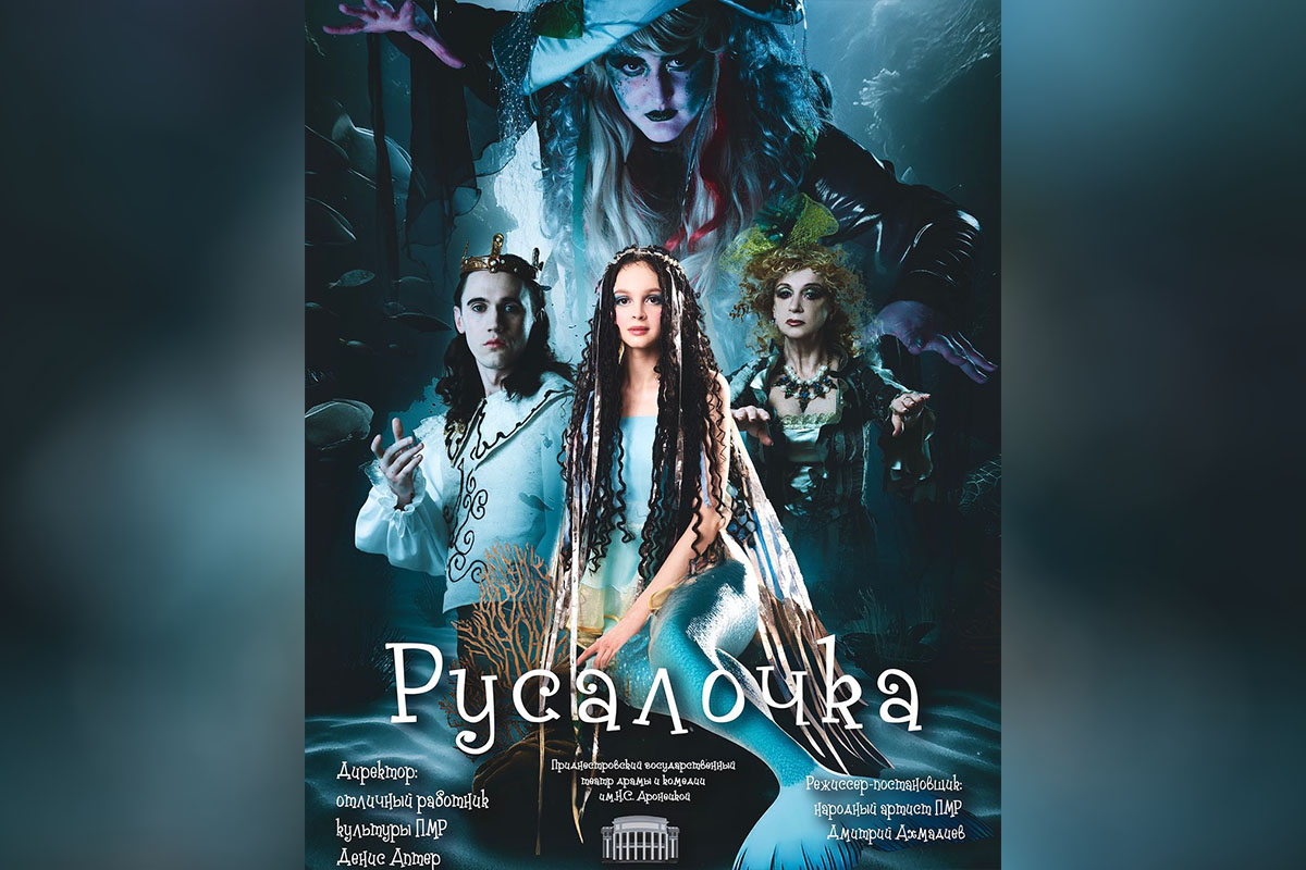 Описание: Спектакль поставлен по одноимённому произведению датского сказочника Ганса Христиана Андерсена. В главных ролях студенты-актёры Приднестровского государственного института искусств Надежда Негру (Русалочка) и Александр Малов (принц). Ведьму сыграет Ирина Олейник, а Ирина Серикова - бабушку Русалочки.