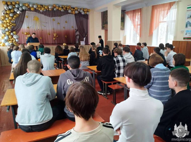 Как сообщила пресс-служба МВД ПМР, перед школьниками выступили инспектор по делам несовершеннолетних рыбницкого отдела внутренних дел и представитель православного духовенства.