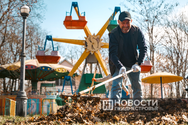 Работа сегодня кипела и в столичном парке культуры и отдыха «Победа». За его чистоту отвечали тираспольская госадминистрация и депутаты городского совета. Перед ними была поставлена задача очистить территорию парка от опавшей листы.