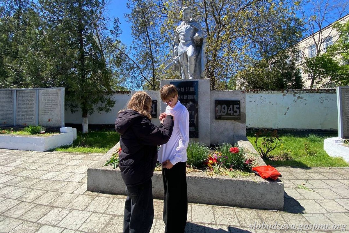 Слободзейский район, 27 апреля. /Новости Приднестровья/. В селе Ближний Хутор учителя вместе с учащимися 8 класса провели акцию «Георгиевская ленточка» на местном Мемориале Славы.