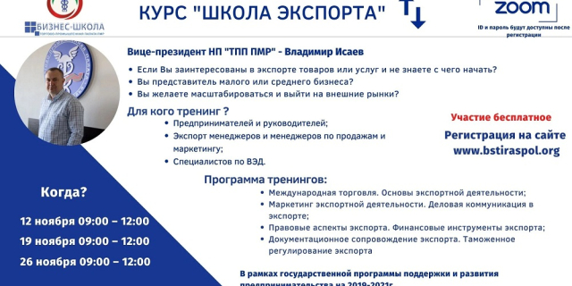 Курс «Школа экспорта» Торгово-промышленной палаты перенесли на ноябрь Занятия пройдут онлайн на платформе Zoom 12, 19, 26 ноября 02 Ноя., 2021, 17:35 Экономика ТПП курсы
