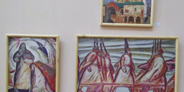 Экспозиция включает 25 копий полотен из фондов Государственного художественного музея, посвящённых Великой Победе