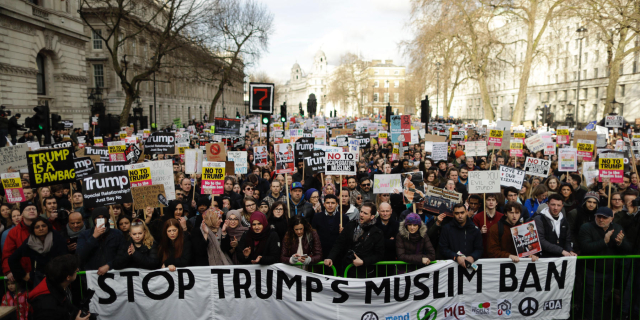 В Лондоне прошла акция протеста против визита Трампа в Великобританию Митингующие выступали также против закона президента США о мигрантах 04 Фев., 2017, 21:26 В мире Великобритания протест
