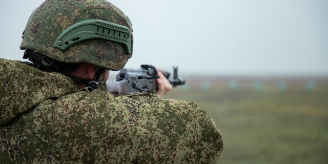 На учебном полигоне бойцы поражали мишени из различных положений