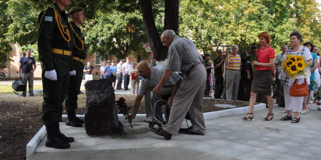 Торжественные мероприятия традиционно начались с митинга у памятного знака «Блаженны миротворцы»