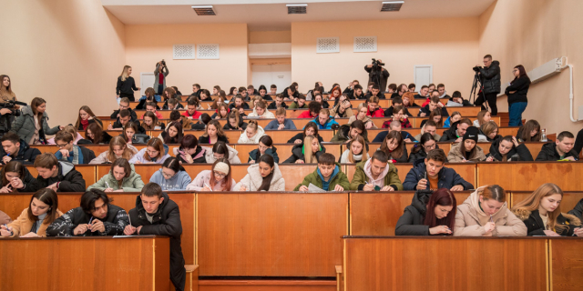 Более 200 приднестровцев написали тест по истории Великой Отечественной войны На вопросы отвечали студенты ПГУ, Военного института и курсанты ТЮИ 02 Дек., 2022, 18:20 Общество История молодёжный парламент