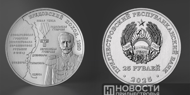 Банк Приднестровья выпустил памятные монеты «Бредовский поход. 1920 год» Номинал денежных знаков – 25 рублей 13 Фев., 2025, 14:38 Общество ПРБ монеты
