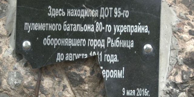 Неизвестные разбили памятную табличку на ДОТе в Рыбнице