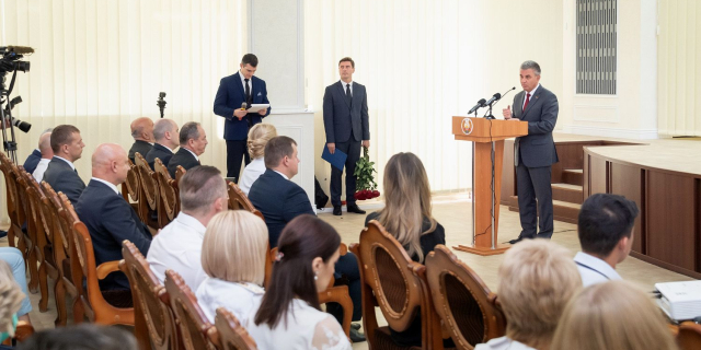 Главе государства и другим почетным гостям праздничного мероприятия вручили юбилейные медали «30 лет приднестровской юстиции»