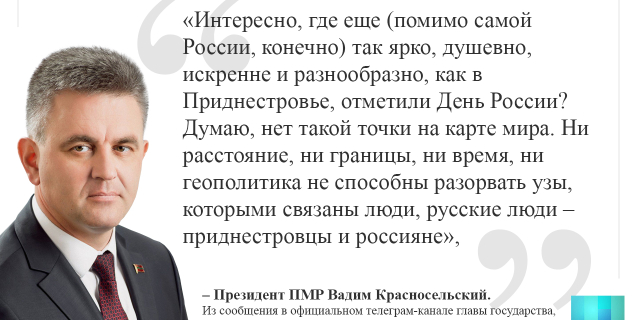 Вадим Красносельский подчеркнул, что в Приднестровье душевно и разнообразно отметили День России