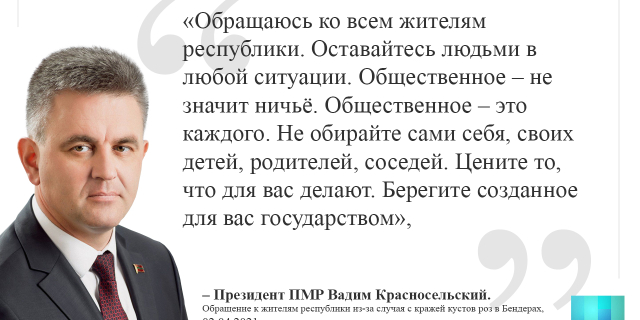 В своём телеграм-канале глава государства прокомментировал кражу двух десятков розовых кустов из бендерского парка