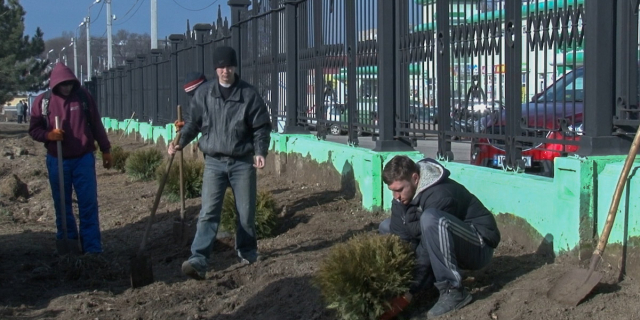 Высадили туи двух видов: шаровидные и смарагды