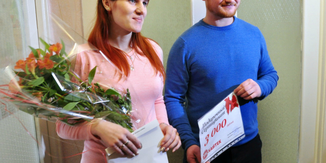 Молодой семье вручили сертификат на 3 тысячи рублей на покупку бытовой техники
