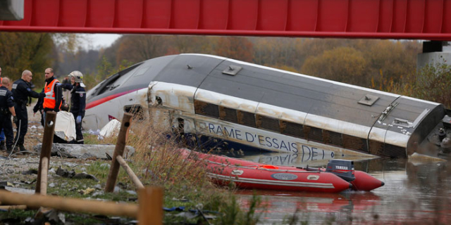 Скоростной испытательный поезд сошёл с рельсов во Франции
