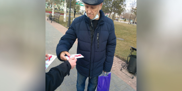 Молодые люди раздавали прохожим памятки о мерах профилактики онкозаболеваний