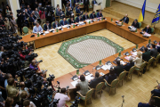 Украинские власти обвиняют Россию, которая в ответ на незаконное блокирование российских грузовиков приостановила движение большегрузов, зарегистрированных на Украине, в нарушении правил Всемирной торговой организации